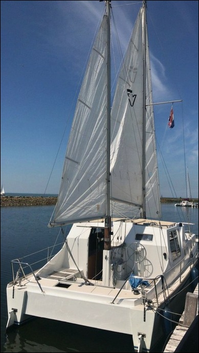 10m motorsailor catamaran, 33' polyester motorsailing catamaran,33' cruising catamaran for sale,10m kajuitcatamaran te koop,polyester cruising catamaran,polyester Gezins catamaran,op een catamaran wonen,bewoonbare toer catamaran,pre owned liveaboard catamaran,gebruikte motorcatamaran,2ehands familie zeilcatamaran,used catamaran for family sailing,gebrauchte Motorsegler Katamaran,10m zweithand Katamaran,Polyester Wohnkatamaran,catamaran moteur/voilier d'occasion,catamaran vie à bord usagé,moto-catamaran à vendre en Pays-Bas