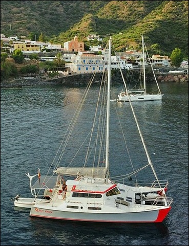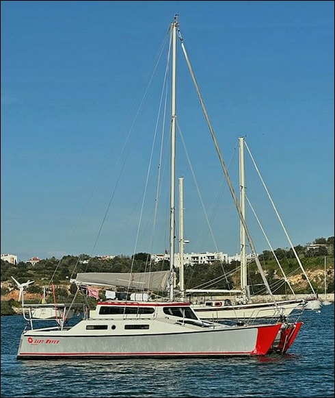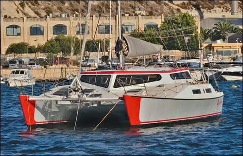 "Lady Rover" was built this way in Finland by her first owner following the original MIRA-plans. The next Danish owner-couple added the bridgedeck cabin for more living-space and comfort about twenty years ago and had the catamaran registered in Denmark with proof of VAT-payment in 2008.